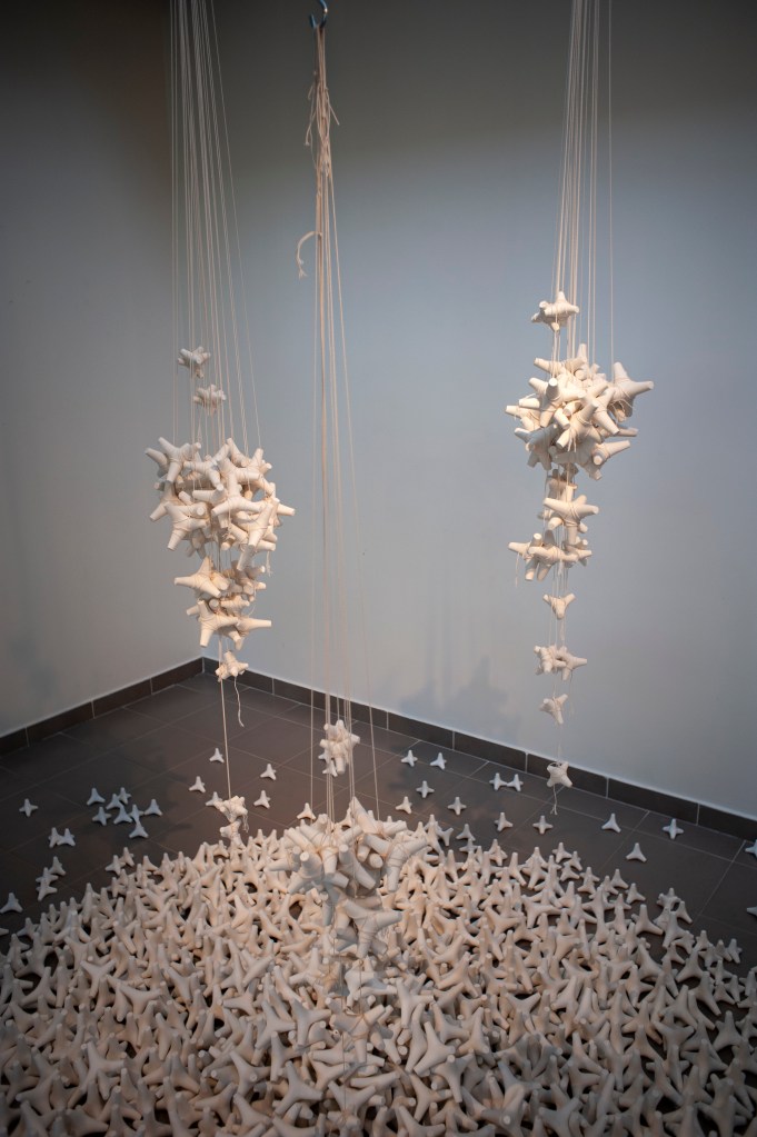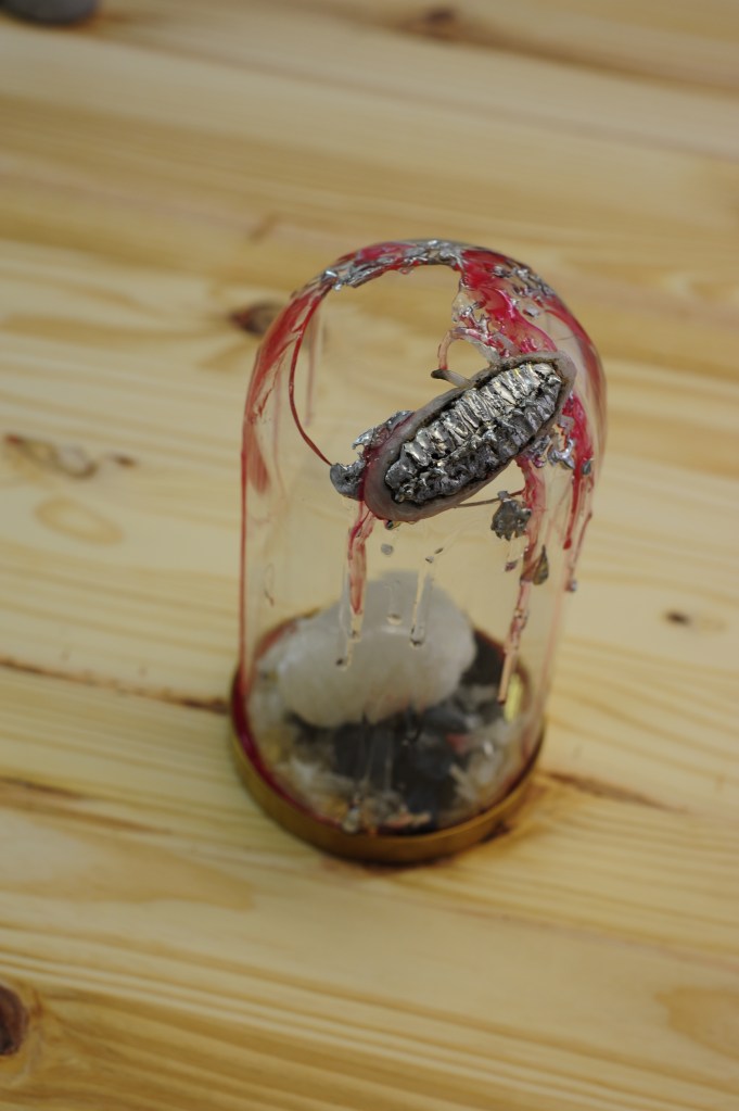 Cette exposition, constituée seulement de petits formats, présente plusieurs artistes. Chacun, au regard de sa pratique nous dévoile une part de la vision qu’il porte sur « SES GRAINS » et nous présente cette grande plage que l’art nous propose mais également la collection pour ne pas dire le « cabinet de curiosités », le « grain de folie » qu’il en aura developpé . Ainsi, découvrons-nous ces objets précieux, semblant être accumulés de façon boulimique ou préservés telles des reliques à l’abri du temps.