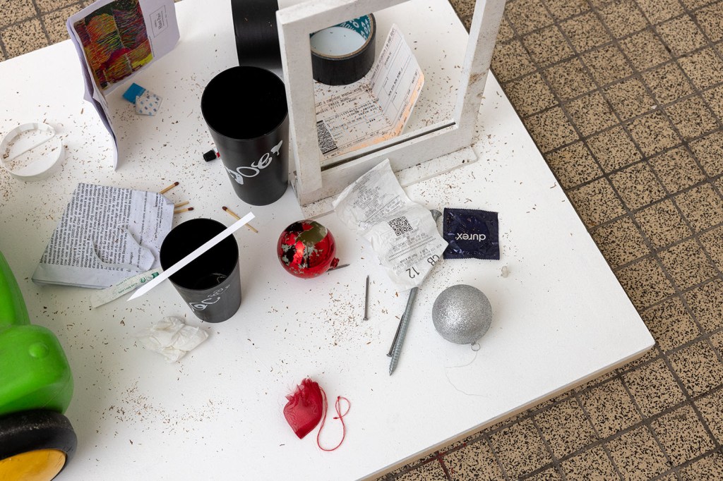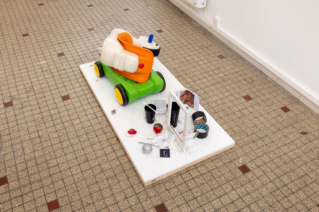 Ce chaos miniature, aux innombrables formes et couleurs, trouvait son propre équilibre visuel dans la sérendipité qui l’avait construit jour après jour, loin de toute pensée brutale. C’est donc dans cette logique de laisser faire que s’est organisé l’exposition Lost and found # 2 , à la manière d’un pot en verre dans lequel chacun des artistes aurait déposé quelque chose de son histoire pour qu’elle se recoupe en toute liberté, au hasard des coïncidences, avec celles des autres, cristallisant l’espace de quelques trop furtifs instants une pensée commune, mais multiple, des artistes.