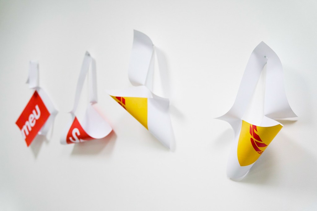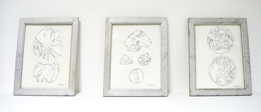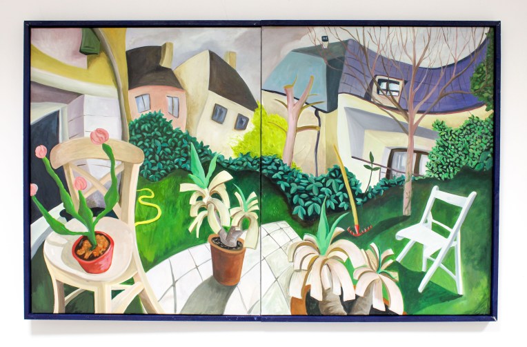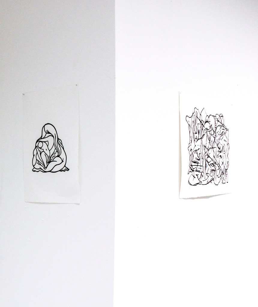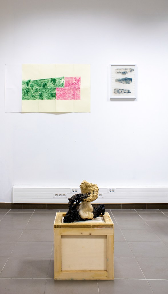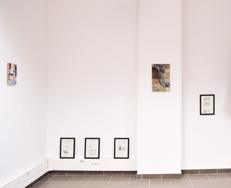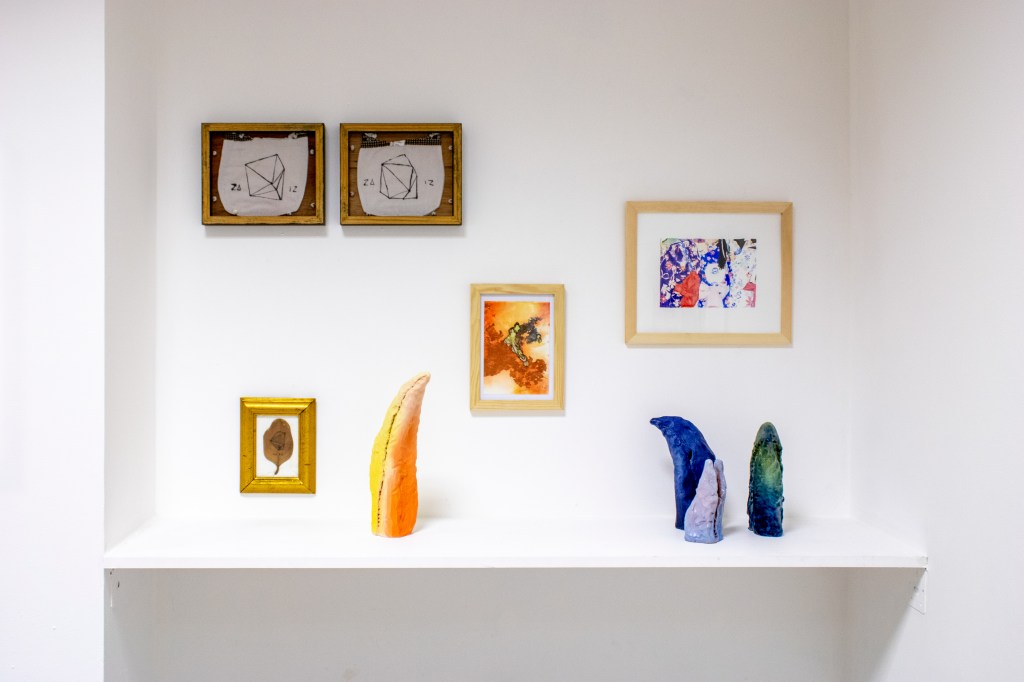 Abordé initialement par son titre joyeusement caustique, l’exposition Ménage à trois dépeint la galerie Jacques BIVOUAC, la faisant théâtre d’un équivoque arrangement domestique. C’est ici que font ménage les œuvres des trois artistes, Hélène Bleys, Jeannie Brie et Julie Freichel. C’est dans cette antichambre qu’elle ont imaginée une cohérence de proposition, usant d’un jeu de questions/ réponses, une œuvre renvoyant à l’autre et inversement. Se ressent dans la proposition une métonymie de la forêt. Des collections de bâtons à l’image, de la jolie feuille ramassée lors d’une promenade jusqu’à la représentation d’une forêt dense abattue. De l’arbre au papier, de la feuille à la branche. Les références, diverses s’entremêlent et se font écho. Se faisant figure partielle d’un tout, pièce d’un savant assemblage dont les morceaux n’évoquent pas tant des solutions que des possibilités.