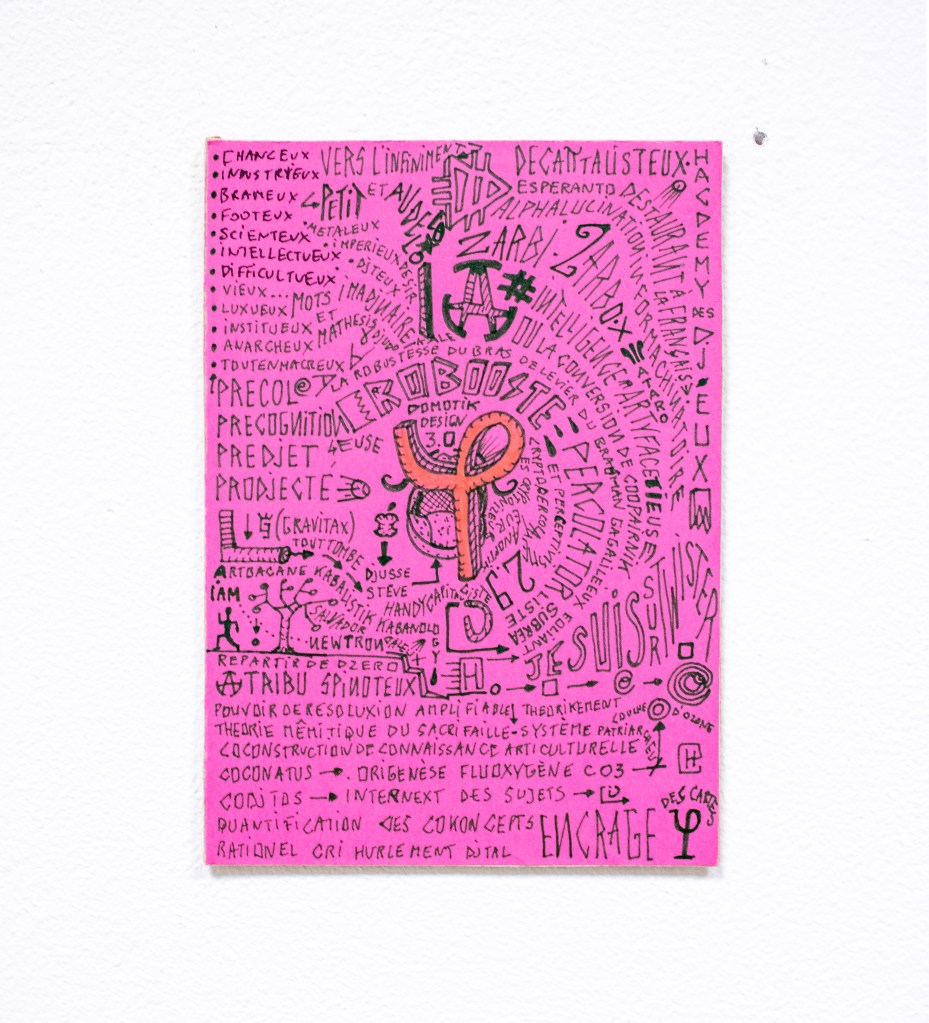 L’œuvre du Djtal HUMAIN est à entrevoir à travers le prisme du génie, au sens premier du terme, car l’artiste, ingénieur de formation, développe un travail autour de connaissances techniques, économiques, sociales et humaines. Il crée des situations de conversations où le spectateur, interloqué, se prend au jeu de la création artistique. Ainsi l’œuvre devient active, plus qu’interactive. L’art y est un espace démocratique de transgression. C’est donc que le travail du Djtal HUMAIN se niche quelque part dans l’expérience d’autrui, dans cet espace ténu où le langage permet la compréhension. Et s’il en appelle parfois aux totems qu’il confronte aux lois du digital, c’est peut-être pour répondre à l’urgence humaine de recréer des figures tutélaires. En définitive c’est vers l’autre que le Djtal HUMAIN oriente toujours sa pratique. Il développe un art social, ou sa monnaie d’échange, le Djtos, représente un espoir de dévaluer le système bancaire actuel qui nous appauvrit au quotidien. Se dessine alors une prémonition salvatrice, celle d’un monde après l’argent.
