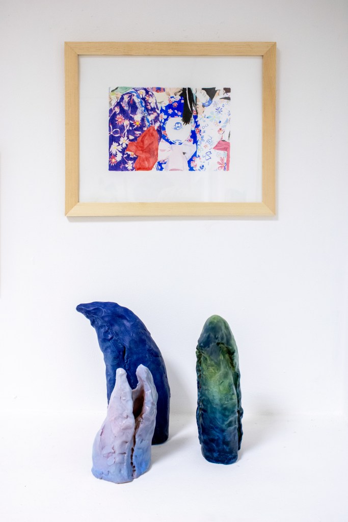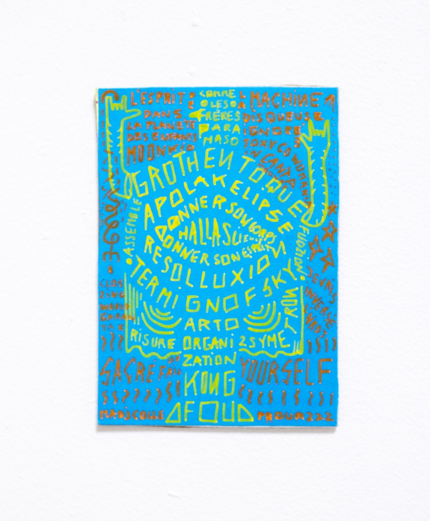 Le regard sur les œuvres est frappé à mesure des appels à toucher leurs images. Sommes nous confrontés à un savoir-faire artisanal dont la technique subjugue ou à des pièces de cabinet de curiosité dont l’étrangeté interroge ? Danaé Monseigny s’active en « rhizomant » ses passions pour l’archéologie et les arts premiers ou singuliers, son intérêt pour les profondeurs de l’inconscient et les mots teintés d’expression visuelle et illustrative. Au fait des exigences évocatrices de ses projets créatifs, elle active à dessein les richesses possibles et événementielles de pratiques multiformes et rêvasseuses, tout un atelier poïétique fait d’invitation à acter ou suggérer un récit écrit ou en image. La sculpture et le dessin, voire toutes perspectives de volumes rationnels ou inventés ne sont pas en reste quand, changeant les proportions d’une œuvre, elle active un principe d’installation in situ ou, à fortiori l’occasion d’amplification artistique en trois, voire quatre dimensions d’un projet. Ses manières d’œuvrer ouvrent la possibilité d’instrumentaliser ou de faire dériver les techniques en les teintant paradoxalement d’incertitude, pour surjouer leurs brillances naturelles ou conforter un effet esthétique buissonnier. Et si, ébloui ou transporté on songe parfois aux « bricolages » savants ou opportunistes de Man Ray, Dorothea Tanning, Max Ersnt, Meret Openheim ou d’artistes surréalistes ayant gravité autour d’André Breton sinon des productions d’art brut, c’est bien qu’on reconnaît dans son propre travail d’aussi réels « détours du monde ».