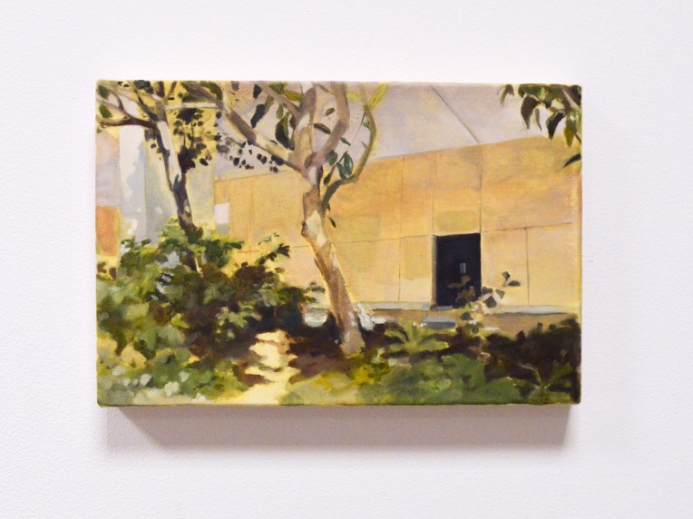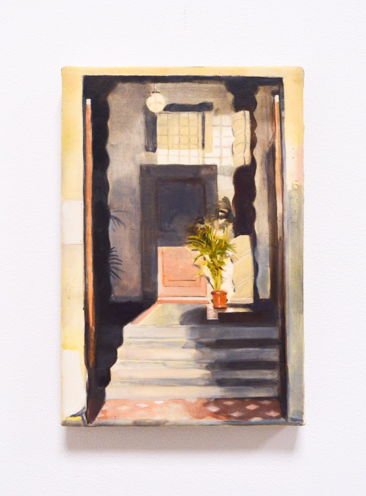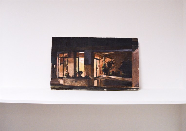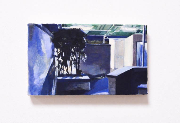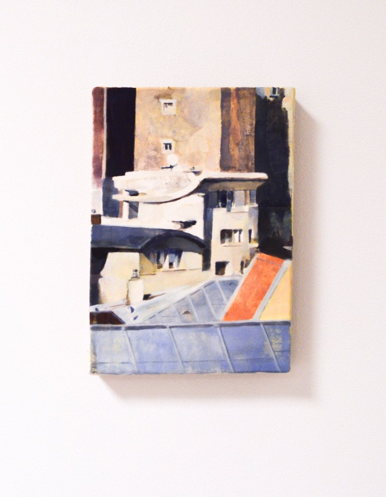La galerie Jacques BIVOUAC vous propose de découvrir Lumière sur plan, la première exposition personnelle de Luc POMMET, étudiant à l’école des Beaux Arts de Paris. Lumière sur plan, mais lequel ? Celui de l’architecture où l’espace se définit en des volumes, ou encore celui du cinéma qui crée une mise en scène plaçant le sujet dans une durée, dans un avant et un après de l’objet peint. C’est dans cette construction du plan que la lumière opère*. Une lumière travaillée, semblable à celles des projecteurs, qui sculptent, révèlent et construisent une image. Alors les toiles se font discrètes volontairement, guère plus grandes que des A4, pour capter le regardeur et lui livrer une vision du paysage, comme issu d’un arrêt sur image.