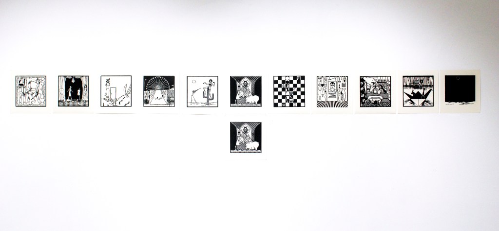 A la démesure du personnage se confronte la rigueur du praticien. Le travail de Thomas est à la fois une projection d’ensemble, une composition pensée dans le moindre de ces axes de lectures et un souci infini de la ligne. Si l’on croit comprendre les images qui sont livrées à notre regard, c’est que leur simplicité formelle s’impose à nous, pour autant, leur sens est labyrinthique. Il existe dans ces compositions qui oscillent entre volubilité et silence des dizaines de degrés de lecture. L’œil averti pourra y revenir. Il s’agit bien là de la qualité des grands artistes, celle à la fois de pouvoir être entrevu en bloc, dès le premier regard et de pourtant être vu et revu, sans lassitude.