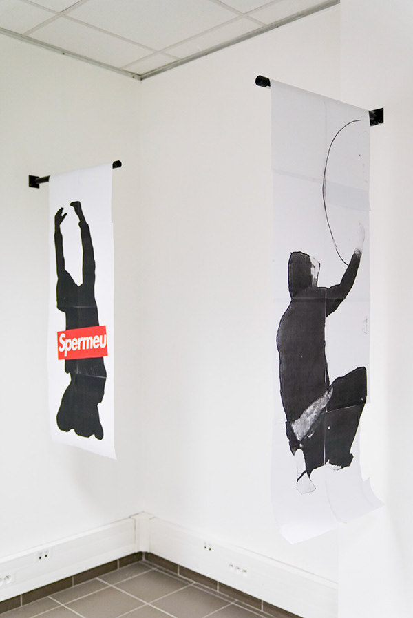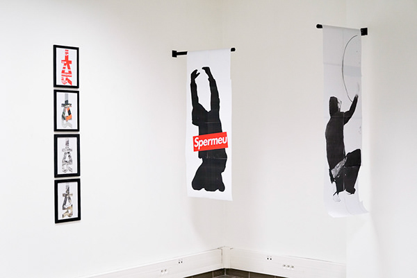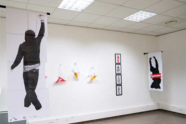 Pimkie BROOSTERS est né à Brooklyn, et y a vécu. Cependant depuis sa plus tendre enfance il a toujours été fasciné par la France, aussi il y 8 ans il décide de s’installer à Paris. Dès lors, et « comme par magie », nous dit-il, les rencontres et les imprévus se succèdent. Petit à petit il se désintéresse de sa profession d’origine, publicitaire, pour finalement se consacrer à la création artistique. Pimkie est un artiste sans formation, ou plutôt sans déformation, devrait-on dire. Il se joue de toutes les formes artistiques. Danse, objet, peinture, graffiti, etc… Tout est prétexte à réflexion et il difficile de cantonner son travail à une discipline tant ses œuvres oscillent entre plusieurs. Pimkie ne se prétend pas artiste, mais pourtant il produit des œuvres. Il est le fruit d’une ambiguïté inhérente à l’art qui au fur et à mesure est devenue sa problématique première. « Je voudrais que mon art soit comme une vitrine de magasin », cette phrase attrapée à la volée lors de nos entretiens, donne le ton de l’exposition Collection Automne – Hiver, qu’il a conçue spécialement pour la galerie Jacques BIVOUAC et qui s’attache à présenter un art de vitrine, mais pas de façade.