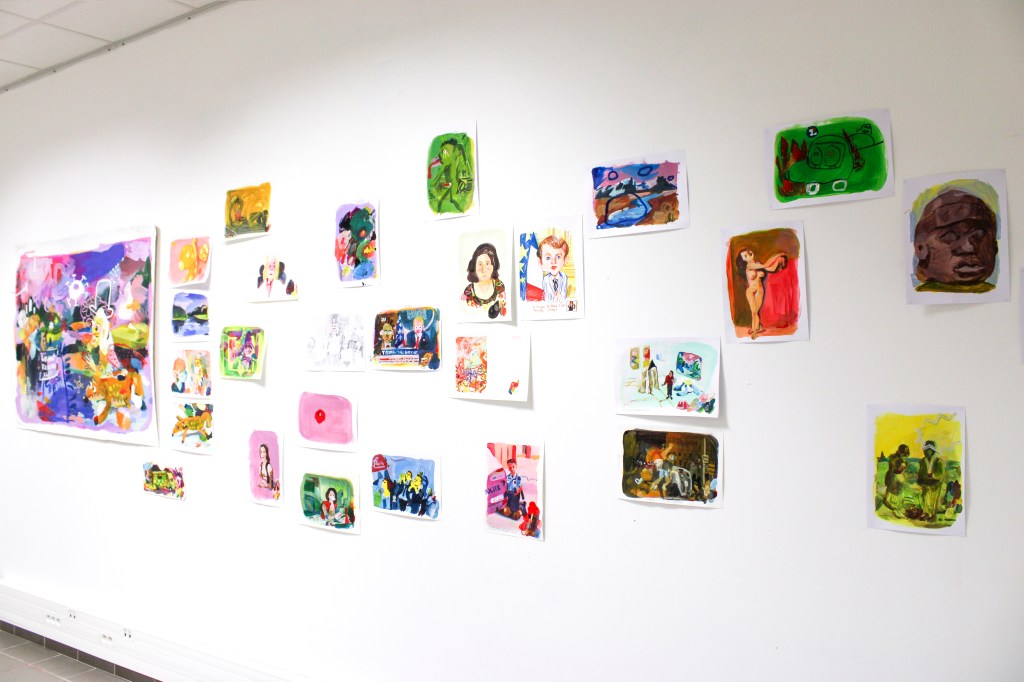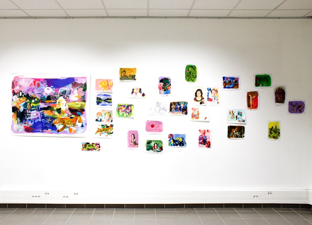 Le corpus des œuvres présentées à la galerie Jacques BIVOUAC a été réalisé spécialement pour cette exposition, dans un temps court, en à peine plus d’un mois, témoignant ainsi de la régularité de la pratique de Jean Marc, qui à ce titre peut aisément être qualifié de stakhanoviste du dessin. La collecte d’images, érigée en habitude, constitue La genèse de ces travaux. Les images sont glanées sur le flux constant des réseaux dit sociaux. Des photos de profils, bien souvent de face. Des autoportraits ou des portraits d’anonymes se mettant en scène qui nous rappellent ces photographies d’acteurs qui inondent notre quotidien. Mais ici il est question d’acteurs inconnus qui se situent quelque part entre l’ombre de David BOWIE et la prophétie d’Andy WARHOL. Ces images une fois triées sont traitées à l’aquarelle avec objectivité et simplicité sans ajout ni fioriture. Pour ainsi dire, et c’est important, sans jugement. Elles sont un instantané de l’époque. Une galerie d’avatars, en somme. Et si l’humour sous-jacent est souvent noir, comme l’ami alibi de Nadine, il se dégage de l’ensemble une empathie salvatrice teintée de fascination pour ces inconnus si proches de nous.