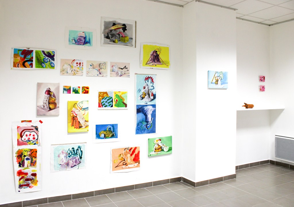 Philippe Marcus, nous murmure la peinture en des lieux, des instants, des objets trouvés. Au commencement la ligne, celle du dessin, agit comme moteur à tout le reste. A l’écriture, marquage de départ, succède la couleur, dégoulinante et vive. Elle est appliquée sans hiérarchie, parfois se superposant mais ne trahissant jamais la ligne de conduite des débuts. Le tout s’évase en un vocabulaire de formes et de couleurs singulières, procurant une cohérence particulière au travail. Les œuvres se répondent, se transforment et réapparaissent d’un format à l’autre comme prisonnières d’un puzzle géant. Le véritable jeu réside dans l’assemblage et l’écho qu’elles suggèrent tant entre elles qu’avec le visiteur. Fable astucieuse, on retrouvera en y regardant bien, les choses cachés, entre le trait et les aplats. Et souvent dans ce que l’on pensait abstrait surgissent des visages, des figures…