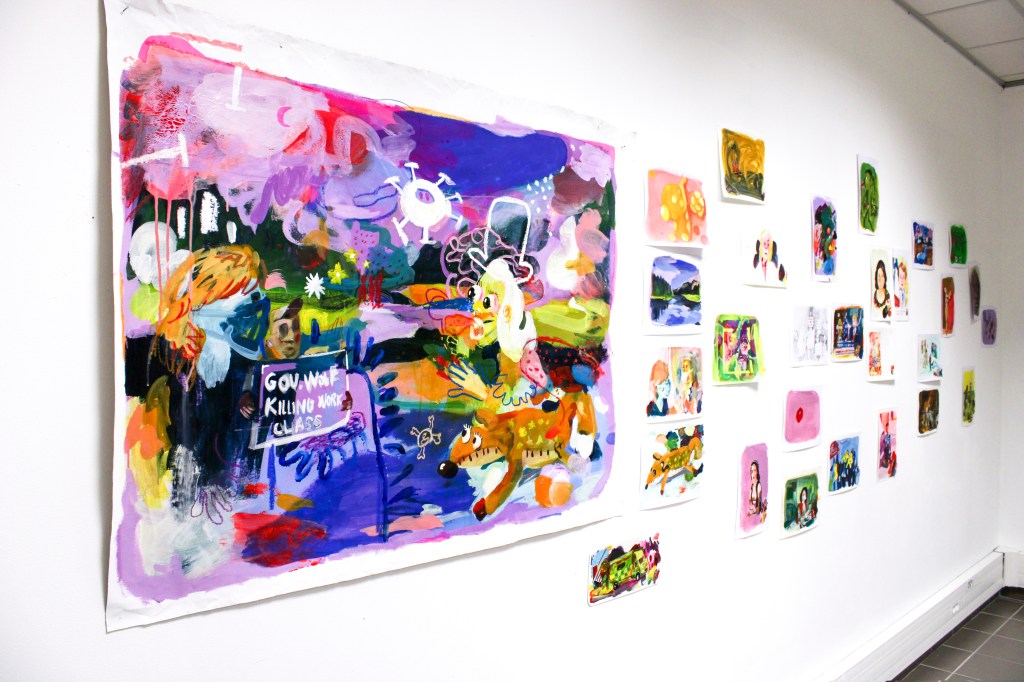Pour cette cinquième exposition, la galerie Jacques BIVOUAC a donné carte blanche à l’artiste Guillaume MATHIVET. A cette occasion, il endossera la double casquette d’artiste et de commissaire. Il a choisi de convier trois artistes dont les problématiques l’interpellent. Vous retrouverez des œuvres de Slimane Ismaili ALAOUI dit « Nassyo », de Katya ELIZAROVA dit « Quelish » et d’Eddy CHARTIER. Tout en orientant volontairement la thématique de l’exposition autour de la notion de climat, il nous propose une réappropriation de l’univers du graffiti par la peinture. Fragment de mur, d’espaces, gestes de marquages des supports, comme pour amener la trace, ce que l’on trouve dehors à l’intérieur même de la galerie. Les travaux sont mis en regard et se partagent l’espace, sans hiérarchie. Chacun a déposé quelques objets, quelques idées, récupérés sur la route, matérialisant ainsi un chaos, reflet de notre époque mais qui implique une réponse immédiate à la question laissée en suspens désordre ou changement ?