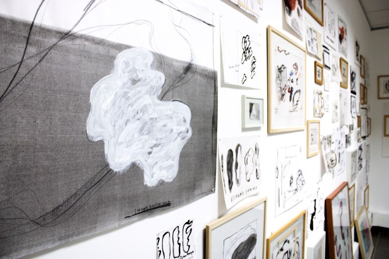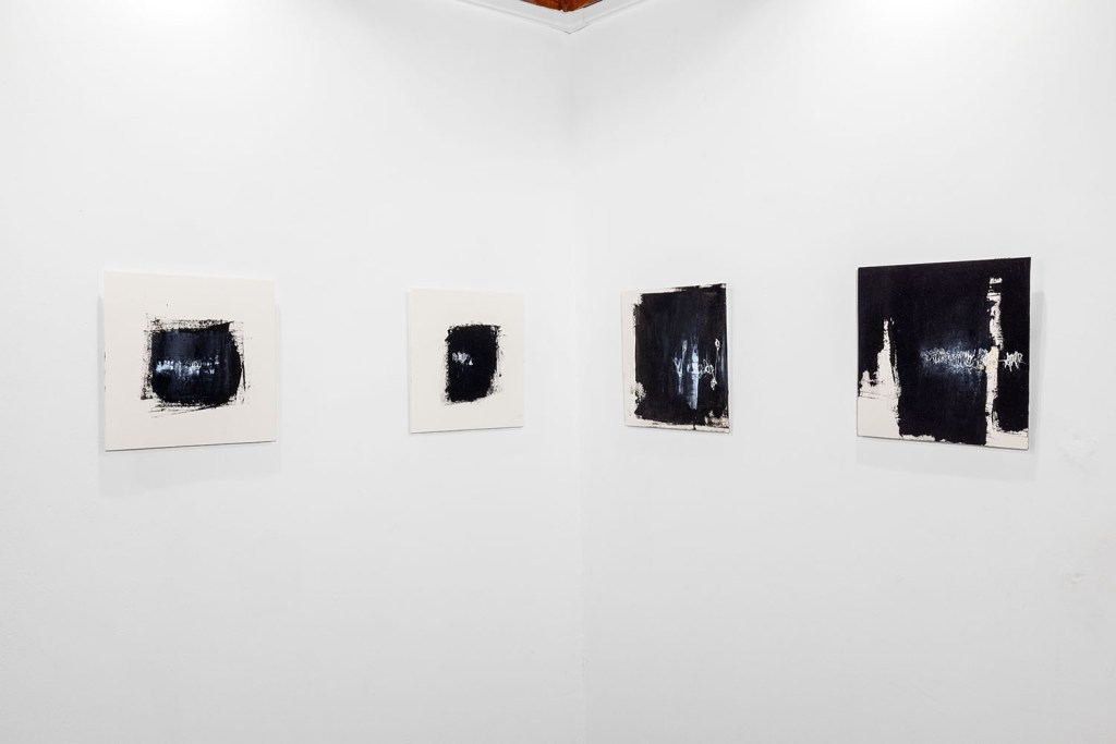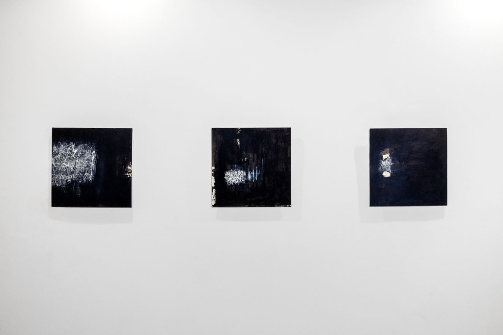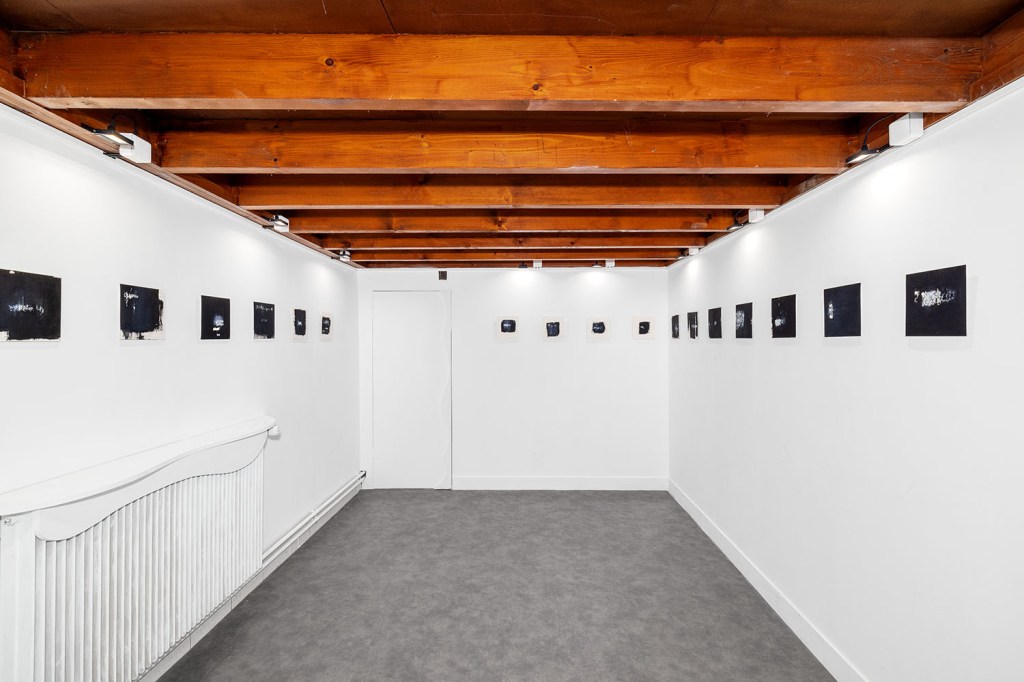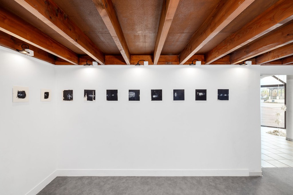 Chacune des oeuvres ainsi accrochées est volontairement confrontée à son reflet absenté du fait de la distanciation de sa propre mesure, dans un espace où une numérologie savante des équivalences opère alternativement entre les formats et les écarts pour créer à la manière de Marey une chronophotographie fluctuante de l’incertitude. L’artiste nous propose un parcours, ou plutôt son parcours introspectif à l’intérieur d’un clair obscur subtil réduit à son substrat.