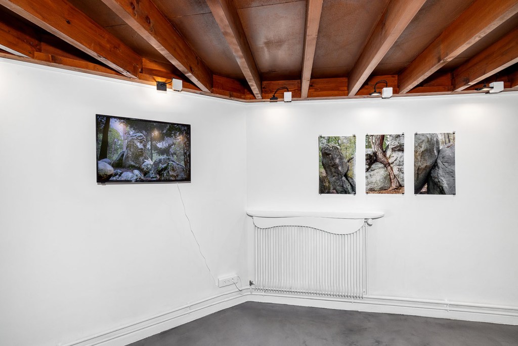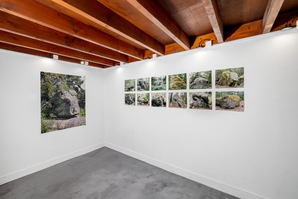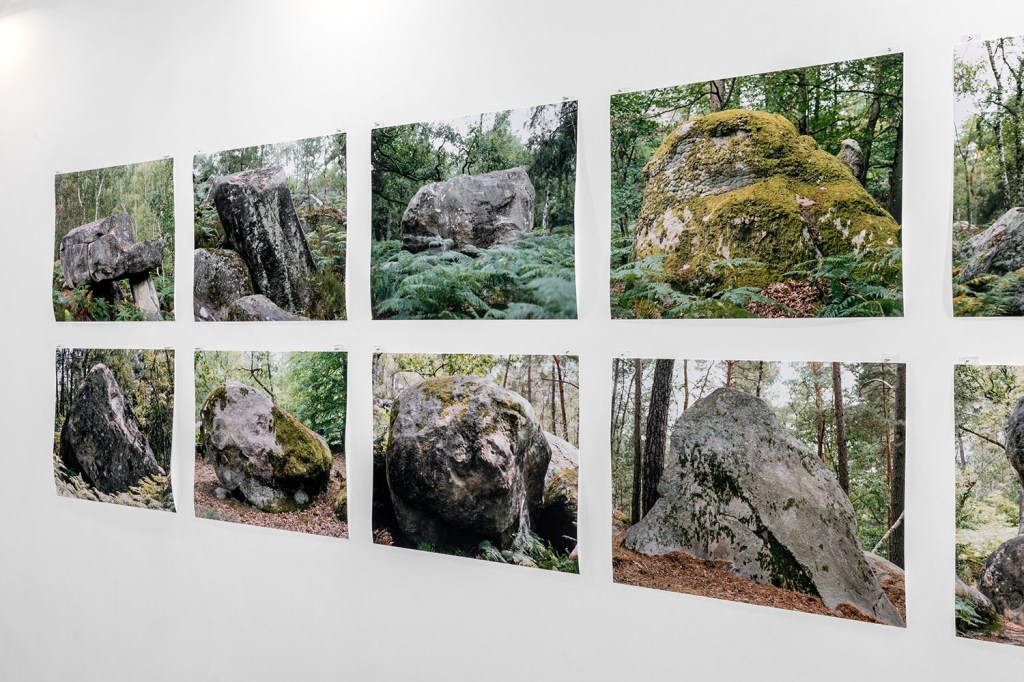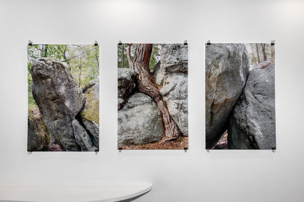 Dans la salle, jalonnant les murs de l’exposition : une ode visuelle, sensible et sensitive, à la nature. En un florilège de photographies capturées lors de ses flâneries au milieu des arbres de la forêt de Barbizon, Constanza Piaggio tente de saisir l’insondable – l’immémorialité des lieux qui subsistent indéfectiblement. Dans sa série Résonances, la roche brute, ancestrale, y est omniprésente ; inerte mais vivante, mise à nue dans toute la simplicité de son apparence millénaire.