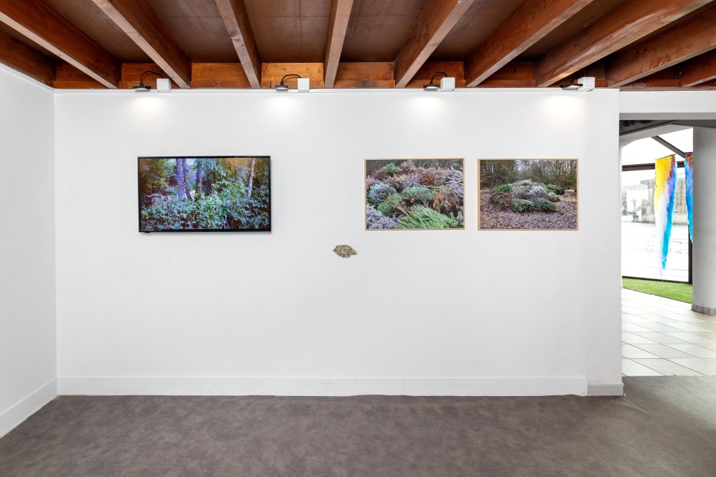 Ainsi, afin de prolonger l’expérience sensorielle, une simulation vidéo 3D co-réalisée avec Romain Sein nous immerge encore davantage au cœur de la forêt. Par le prisme d’une caméra subjective, nous déambulons entre les arbres et les rochers reconstitués, animés par des variables simulant les atmosphères diurnes et nocturnes ainsi que les aléas du temps et des saisons. Le dispositif approfondit notre perception en révélant des facettes insoupçonnées de ce paysage, dans une tentative de capturer l’éternel dans l’éphémère.